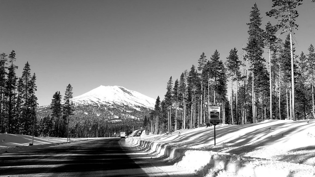Flying to Chicago is a brief trip. Apparently, taxing on the huge airport takes more than the flight itself. We walk just the right time to get to the gate and board the plane for Portland. The views on the windows should be dull as we fly over the Great Plains, but anyway, clouds are interposing between us and the ground. They miraculously move away when we crossed over the Great Divide and the majestic Rockies. Snow covers the earth, a sign that winter arrives sooner on the west coast. The apparition of the spiking through the clouds peaks of the Cascades looks like a mirage at the beginning. The volcanoes are beautiful; they are shining under a generous sun. It’s the first revelation of the destination. Our Mount Bachelor is somewhere farther to the south. Right now, Mount Rainier occupies the center stage, as the aircraft surveys it closely. The sight captivates the captain too, and he announces it to the passengers. The chain of volcanic peaks stretch towards a horizon that is blue and bright. We identify our beloved Mount Hood, and we see the first actual image of Mount Bachelor.